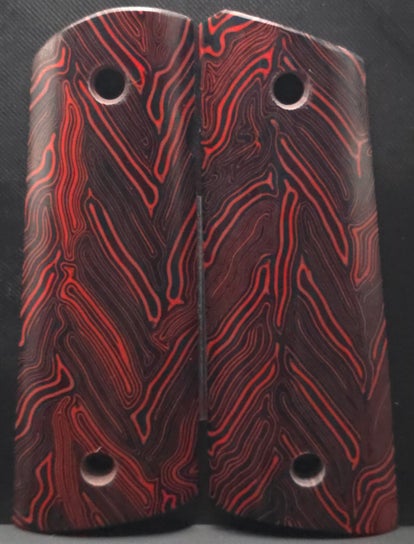 Black with Sager Green Damascus styled G10 custom made grips. G10 is a beautiful product and is light weight. All our grips can be custom order to meet your desires. These grips can be made to have a rough finish for competition shooting if desired.