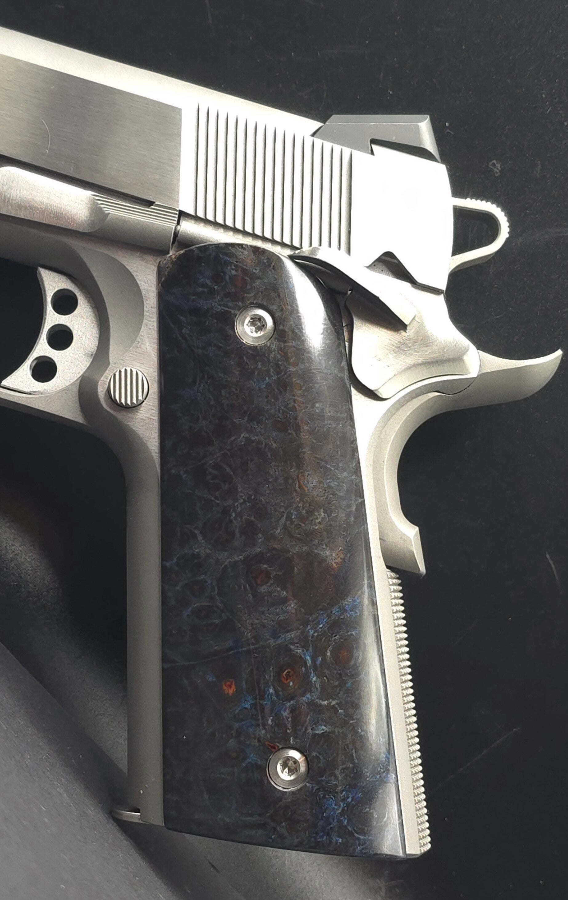 Whether you're at the range or showcasing your firearm in a collection, Blue Stabilized Redwood Gun Grips offer the perfect combination of artistry and functionality. Upgrade your 1911 today with these exceptional grips that blend natural elegance with modern craftsmanship.