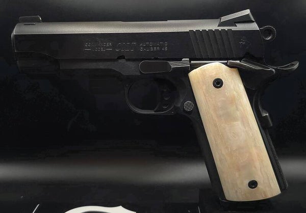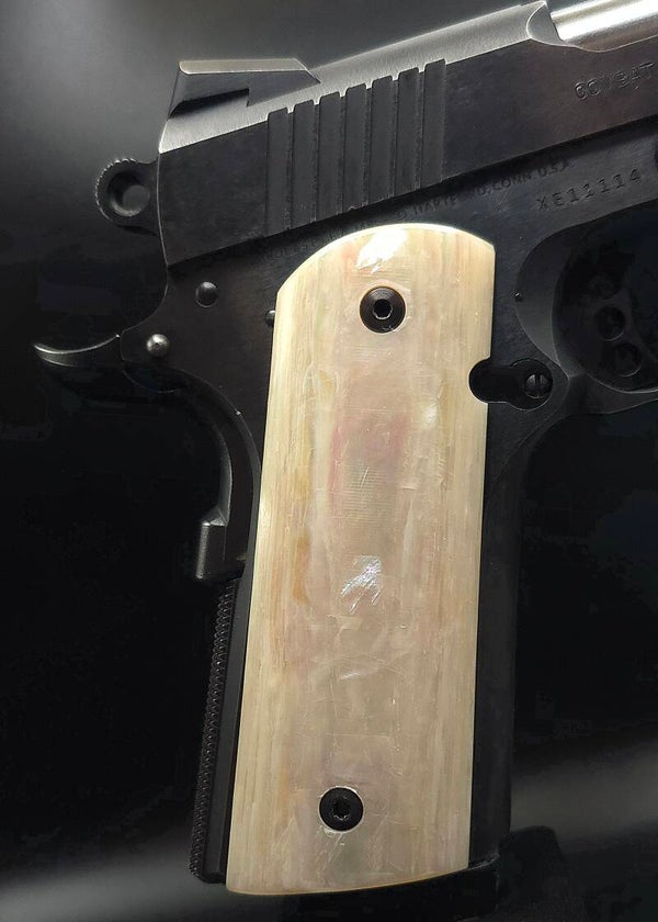 Precision-fitted for full-size Government and Commander frames, each grip is a testament to bespoke craftsmanship and attention to detail. Their natural, radiant sheen instantly transforms your 1911 into a true centerpiece, perfect for those who appreciate both performance and artistry.