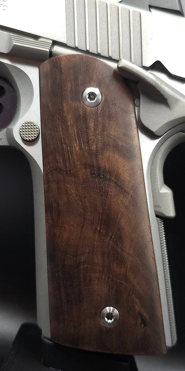 Renowned for its strength and timeless charm, walnut with its distinguished dark hues is a favorite among collectors and shooters seeking a blend of durability and striking visual appeal. These grips are the perfect way to add bespoke refinement and enduring style to your cherished 1911.