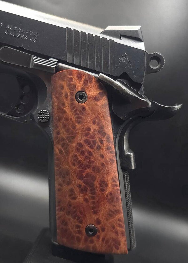 Elevate your firearm with the prestige, rarity, and breathtaking aesthetics of genuine old growth redwood burl. Each set tells a story written by nature and preserved by skilled artisans—making your 1911 a statement piece in any collection